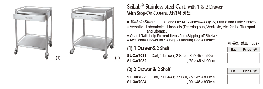 SciLab® Stainless-steel Cart, with 1 & 2 Drawer